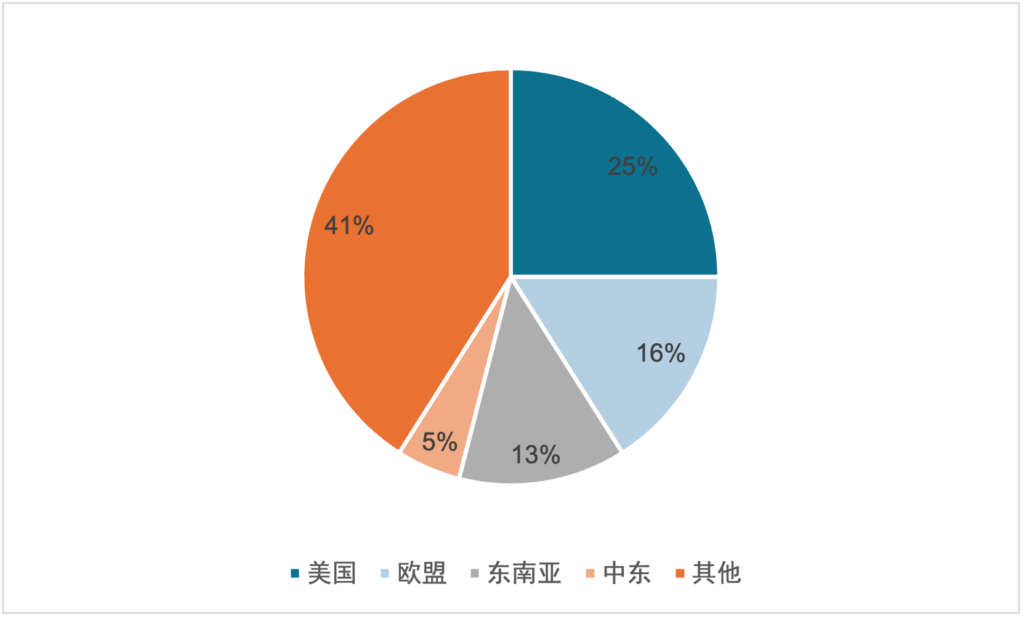 分区域来看,美国和欧盟地区仍是我国当前家居产品出口最主要市场。海关总署数据显示,2023年美国和欧盟在我国家具出口总额中的占比分别为25%和16%,其次是东南亚和中东市场,分别占总家具出口额的13%和5%。分国家来看,日本是我国第二大家居产品出口市场,仅次于美国,约占我国家居出口总额的5.4%。