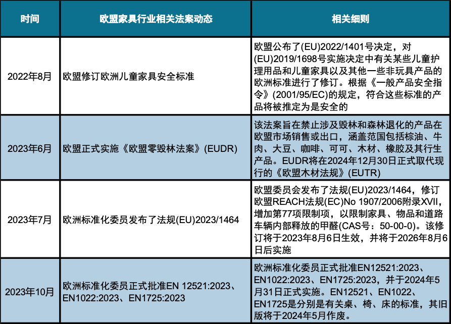 图表 19 近期欧盟家具行业相关法案动态及细则一览