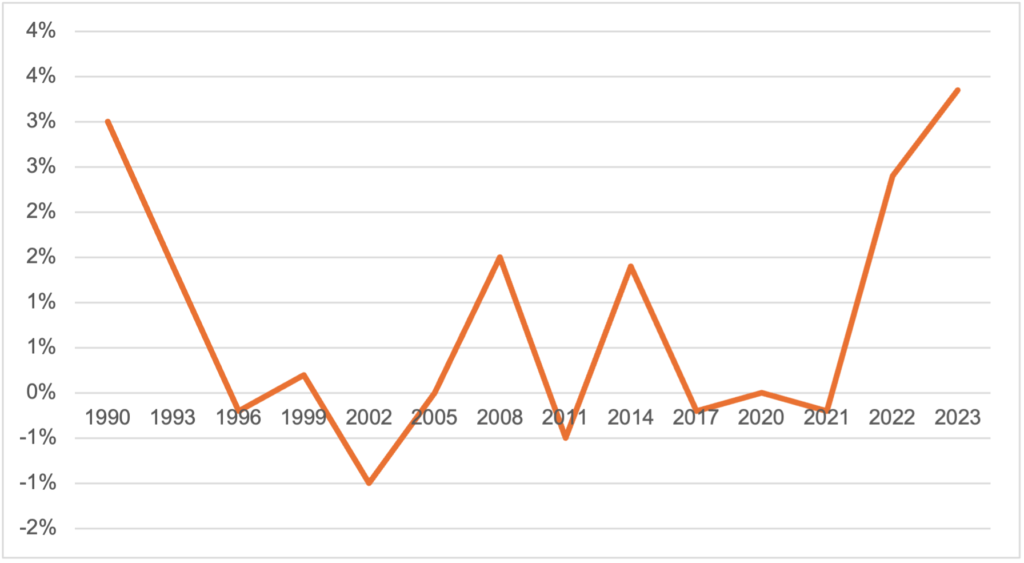 日本民生体系的持续优化,通过物价稳定、就业充分与劳动力结构改善三大维度,为中国家居企业构筑了低波动、高潜力的市场发展基础。根据日本总务省统计局2024年数据显示,从2012年开始,日本经济逐渐摆脱自1990年以来的长期通胀局面,各年的CPI增速普遍恢复到高于0%,2022年尽管基数较高,至2023年时同比增速仍维持温和通胀的水平,形成“物价预期稳定—消费意愿提升—企业投资增长”的良性循环,为家居消费提供可预测的市场环境。