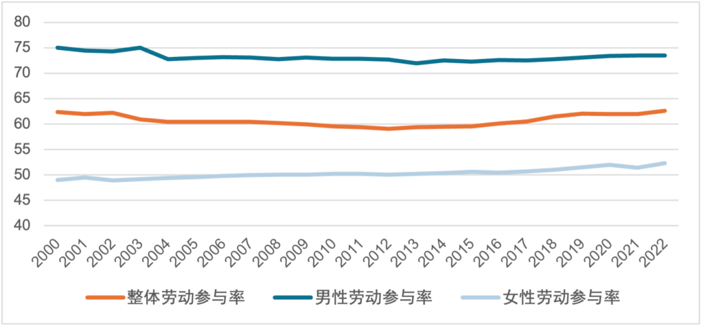 图表 21日本分性别劳动参与率(单位:%)
