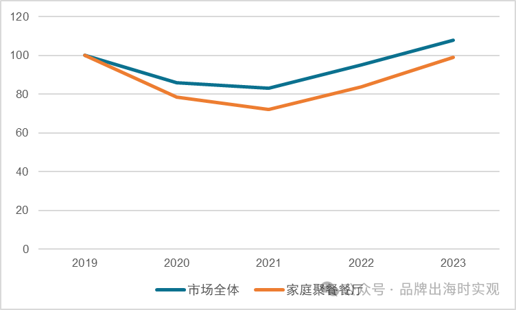 图表 15 家庭聚餐餐厅、餐饮市场整体近年来销售额变动情况