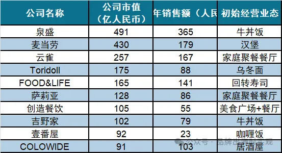 图表 25 日本餐饮行业市值前十公司基本情况介绍