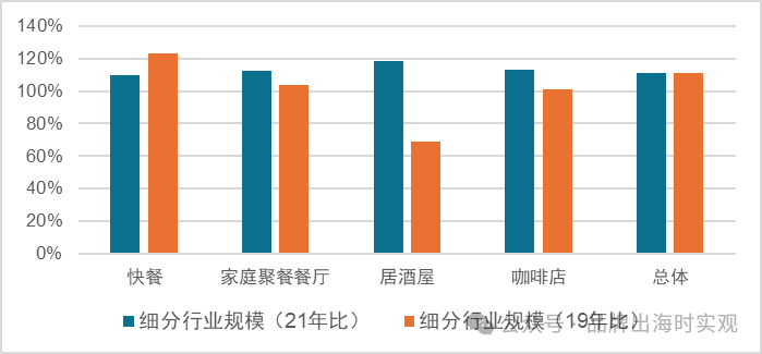 图表 5 2022年日本餐饮业各细分行业恢复情况