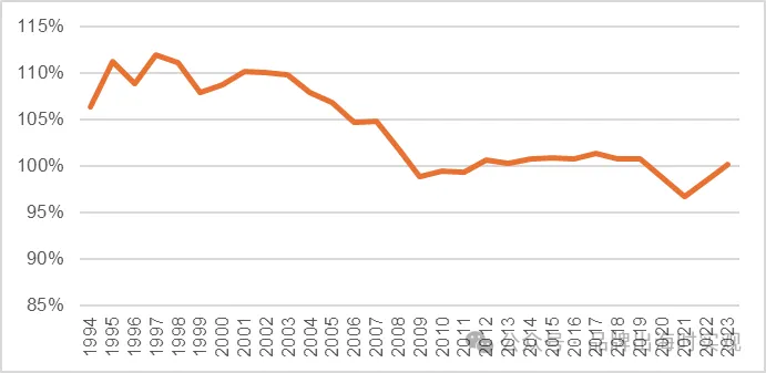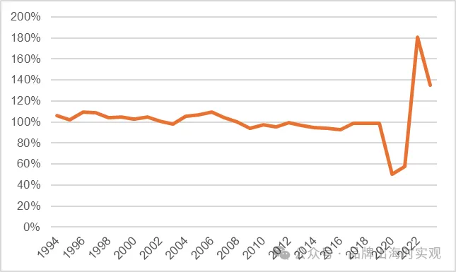 图表 19 1994-2023年居酒屋销售额同比变化情况