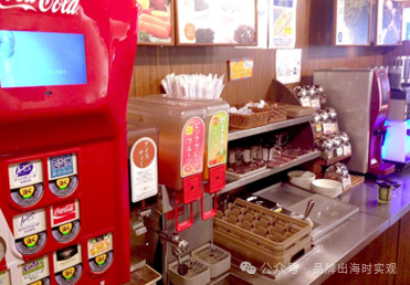 饮料自助也是日本家庭聚餐餐厅的特色之一,顾客只需消费200~400日元左右,即可去自助吧自取。自助吧的饮料种类齐全,咖啡包括卡布奇诺和拿铁,还有专用机器制作的浓缩咖啡;茶类除了焙茶、糙米茶、海带茶等日本茶以外,还有茉莉茶、香草茶、红茶等中西式茶饮;另外还有抹茶拿铁等特色饮料。苏打饮料和果汁品种也非常丰富,其中蔬果汁很受欢迎。如果自助饮料与主菜、小菜、甜品同时点,或者在就餐前通过网络下载优惠券,还可享受折扣。