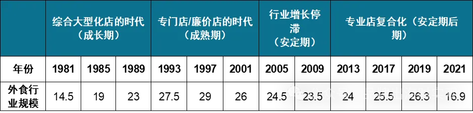 图表 1 日本餐饮市场发展阶段及规模