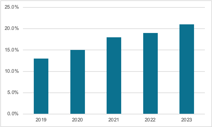 图表 5 近五年餐饮连锁化率的情况