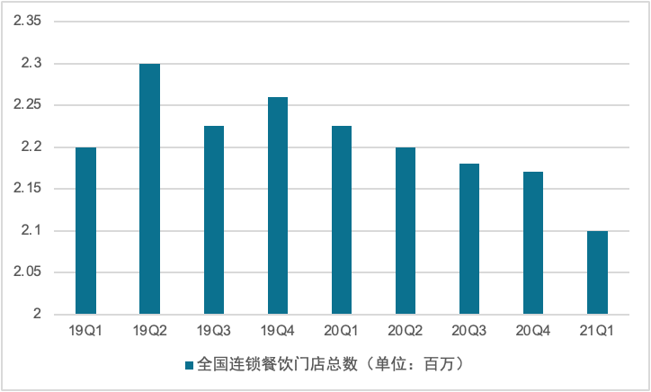 以疫情最严重的2020年为例,全国餐饮收入为3.95万亿元,同比下降16.6%,大量高端、特色餐饮企业由于预制菜占比较低、运营成本较高,且多数不提供外卖服务,经营受疫情冲击较为严重。截止到2021年一季度,全国的餐饮门店总数从905.6万下降到760.1万家,减少了近20%,而连锁餐饮受不正常营业状态所带来的负面影响则较小。